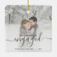 Commemorate your engagement with this beautiful modern keepsake ornament. The grey text reads "Our first Christmas engaged," with the word "engaged" in elegant handwriting script with flourishes before and after. Replace the sample image with your favourite photo, and add your names and the year. A white gradient filter helps make the text pop.
