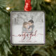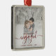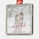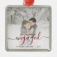 First Christmas Engaged Custom Photo Red Script Metal Ornament