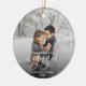First Christmas Engaged Custom Photo White Script Ceramic Ornament