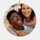 First Christmas Engaged Gold Glitter Script Photo Ceramic Ornament