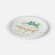 These paper plates are perfect for your holiday engagement party. This design features a sprig of watercolor holly with green leaves and red berries. Below it reads "Our first Christmas Engaged" in faux gold typography with your names and year to personalize. Designed by artist Susan Coffey.