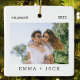 First Christmas Engaged Modern Minimalist Photo Ceramic Ornament