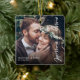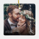 Celebrate your first Christmas as newlyweds with this beautiful “merry & married” photo ornament. Featuring a romantic photo of the happy couple on the front with 'merry & married' in an elegant handwritten script down the side, along with your names and wedding date, this ornament is perfect for commemorating this special milestone. The back showcases another favourite picture, capturing the love and joy of your big day. With its elegant script and modern design, this ornament makes a wonderful keepsake or thoughtful gift for newlyweds, adding a touch of love and holiday cheer to your holiday tree.