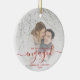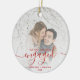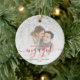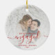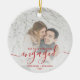 First Christmas Engaged Photo Bright Red Script Ceramic Ornament