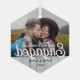 First Christmas Engaged Photo Faux Wood Hexagon Glass Tree Decoration