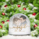 Commemorate your engagement with this beautiful modern keepsake snow globe. The text reads "Our first Christmas engaged," with the word "engaged" in elegant gold faux foil handwriting script with flourishes before and after. Replace the sample image with your favourite photo, and add your names and the year in gold-coloured sans serif font. A white gradient filter helps make the text pop.