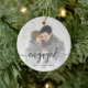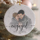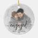 First Christmas Engaged Photo Grey Script Ceramic Ornament