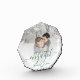 Celebrate your engagement with this beautiful modern keepsake photo block. The pine green text reads "Our first Christmas engaged," with the word "engaged" in elegant handwriting script with flourishes before and after. Replace the sample image with your favourite photo, and add your names and the year. A white gradient filter helps make the text pop.