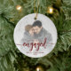 First Christmas Engaged Photo Red Script Ceramic Ornament