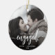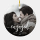 First Christmas Engaged Photo White Script Ceramic Ornament