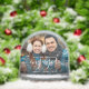 Commemorate your engagement with this beautiful modern keepsake snow globe. The white text reads "Our first Christmas engaged," with the word "engaged" in elegant handwriting script with flourishes before and after. Replace the sample image with your favourite photo, and add your names and the year. A dark gradient filter helps make the text pop.