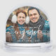 First Christmas Engaged Photo White Script Snowglobe