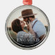 First Christmas Engaged Simple Border Photo Metal Ornament
