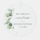 Eucalyptus Foliage Script Wedding photo ornament featuring watercolor succulent greenery eucalyptus stem with grey script and modern typography you can easily change. Replace the photo on the reverse side with your favourite wedding photo