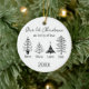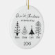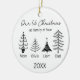 Mark your first Christmas as a family of four with this chic black-and-white tree ornament in minimalist scandinavian style. Four minimalist line-drawn Christmas trees can each be personalised with a family member’s name, with the year at the bottom for a timeless keepsake. This round ceramic ornament makes a meaningful gift for new parents from grandparents or friends celebrating a growing family. Perfect as modern holiday accent, black and white tree ornaments and minimalist Christmas decoration it will commemorate the birth of the second child for years to come.