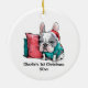 First Christmas Frenchie Dog with Santa hat Pet Ceramic Ornament