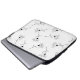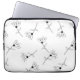 The sleeve is made of nice feeling material and seems very durable. I'm not sure how easy it'll be to clean, but the construction seems sound and the fabric is quick thick. I also like the double zipper. The printing is lovely and appears durable. The white on black contrast is nice, and the design very elegant.