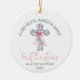 Godmother ceramic Christmas ornament with a pink and blue religious cross with a bow, and the message "god bless" and the baptised baby's name. Personalised keepake for the godparents with a double-sided design.
