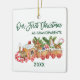 Modern Brush Script Our First Christmas as Grandparents Ornament includes Watercolor Gingerbread Train with candy, cookies and pines. Green.