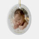 Celebrate the magical milestone of being new grandparents with this beautiful Grandparents' First Christmas Baby Photo Ornament! This elegant ceramic ornament is designed to cherish that special "first Christmas" with your beloved grandchild. The front features a round photo template to perfectly showcase your precious baby's picture, set against a stunning crushed white foil digital effect background with subtle sparkle for a truly luxurious and festive touch.