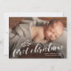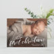 A simple photo holiday card with handwritten first christmas and branch and minimal type. Click the edit button to customise this design.