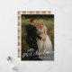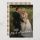 A simple photo holiday card with handwritten first christmas and branch and minimal type. Click the edit button to customise this design.