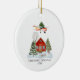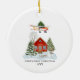 Soar into the season with this whimsical vintage style Aviation themed Christmas ornament! Design features a classic Cessna airplane flying in the sky proudly carrying a Christmas tree a top it's airplane wings. Below, a house surrounded by snow covered pine trees and a sled, while “[NAME] FIRST CHRISTMAS [YEAR]” shines below the cute scene.