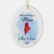 A Personalised Maine State Ornament used for Christmas occasion to celebrate the first Christmas living together as a either as a couple, family or newlyweds in the United States of America.