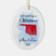 A Personalised Oklahoma State Ornament used for Christmas occasion to celebrate the first Christmas living together as a either as a couple, family or newlyweds in the United States of America.