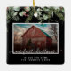 First Christmas in Our New Home 2 Photo Greenery Ornament. What a lovely way to remember your first Christmas in your new home! You'll recall this special moment each year when you decorate your Christmas tree. Ornament shown with My first Christmas in pretty script typography, home photo, family name, and year, family photo and address on side 2. What a lovely gift. Ornament is part of a collection..