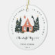 This cute ornament "FIRST CHRISTMAS IN OUR NEW HOME" features a watercolor illustration of a cozy winter house and pine trees covered in a soft blanket of snow. The serene winter scene adds a touch of warmth and nostalgia, making it the perfect keepsake to celebrate a couple's or family's first holiday in their new home. With its charming design and festive sentiment, this ornament will beautifully adorn any Christmas tree and serve as a treasured reminder of this special milestone year after year. Click on "Personalise this template" to customise the message and names. If you wish to change the fonts, placements and colours of the texts, go to "Edit using Design Tool".
