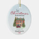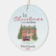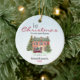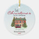 Cute first Christmas in our new home beautiful colourful house ceramic ornament. Celebrate your first Christmas in your new beautiful home with a cute custom holiday ornament featuring a small cute black and white houses. Personalise it by changing the year and your family name.