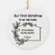 First Christmas in our new home personalised Christmas ornament with address, name and year.