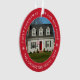 Personalise this modern and elegant 'First Christmas in Our New Home' ornament with a photo of your house, your last name or family name, and the year it was purchased. Elegant red background colour can be modified) and white round-shaped text and snowflake accents beautifully frames the photo. Photo tip: crop photo to a square format before uploading to the site.