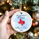 A Personalised Texas State Ornament used for Christmas occasion to celebrate the first Christmas living together as a either as a couple, family or newlyweds in the United States of America.