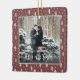 Cherish your first memories together with this lovely Christmas ornament. The design features your names in a modern script font with your photo on red sketched pines pattern background. This ornament will be a keepsake to treasure forever. The ornament reverses to a red sketched pines background with the year.