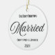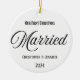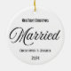 Celebrate your exciting milestone with this beautiful "First Christmas Married" ornament for 2024! Customised with both of your names and the year, this ornament captures the joy and love of your first holiday season as a married couple. The minimalist script design adds a touch of elegance, making it the perfect addition to your Christmas tree or a thoughtful gift for newlywed friends. Crafted from high-quality ceramic with a glossy finish, this ornament will be a treasured keepsake for years to come. Commemorate your new marriage and create lasting holiday memories with this unique custom ornament!