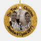 Red glitter (not real) Christmas ornament for newlyweds. Personalise with the couple's names, photo and year.