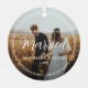 Celebrate your wedding with this beautiful, classic keepsake ornament. The white text reads “Our First Christmas,” with the word “Married” below in an elegant handwritten script. Your names and year are in classic serif font. Replace the placeholder photo with your favourite photo. The photo is framed with an elegant dotted border. A dark gradient filter makes the white text and border pop.