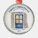 First Christmas New Home Blue Door Winter Boho Metal Ornament