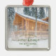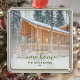Commemorate your first Christmas in your new home with this beautiful modern keepsake ornament. The dark green text reads "First Christmas in our new home," with the words "new home" in elegant handwriting script with flourishes before and after. Replace the sample image with a photo of your new house and add your family's last name. A white gradient filter helps make the text pop.