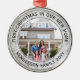 Celebrate the joy of your new place with a custom photo "First Christmas in our New Home" round metal ornament. Text and picture on this template are simple to personalise. (IMAGE & TEXT DESIGN TIPS: 1) To adjust position of wording, add spaces at beginning or end. 2) To centre the photo exactly how you want, crop it into a square shape before uploading to the Zazzle website.) Design features an elegant black and white faux marble border, modern minimalist typography family name and year, and one images of your choice. This unique family keepsake adds a stylish touch to Xmas home decorations or makes a thoughtful housewarming realtor gift idea. There's no place like a new home for the holidays!