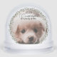 Celebrate puppy’s first Christmas with this charming Snow globe, perfect for new dog parents! Features the elegant script "Our First Christmas as a Family of Three." This personalised Christmas gift is a beautiful keepsake to cherish for years to come. a light green wreath frames the photo of your new addition to the family.