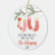 Commemorate the "First Christmas of a Family of Four" with this personalised ornament, showcasing charming stockings and holiday accents. Customise with your family name to create a memorable keepsake celebrating this special milestone. It is a delightful addition to your Christmas tree and a treasured holiday memory.
