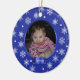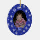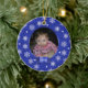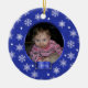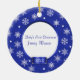 Adorable round ornament done in pretty blue brocade with snowflakes and polka dots. A blue satin looking name plate sits on the bottom. Personalise text on front and back, and add your own photo. Great Christmas tree ornament you and your child will love for years to come. Makes a sweet baby and grandparents gift too.
