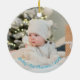 This adorable ornament is the perfect way to commemorate a baby's first Christmas. Featuring a cute, smiling Penguin emerging through a cracked ice design, this charming keepsake can be personalised with text and a photo of baby on the back. It's a beautiful, memorable gift for new parents and a sweet addition to any Christmas tree.