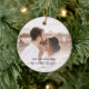First Christmas Photo Mr Mrs Script Newlyweds Ceramic Ornament