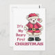 Adorable Polar bear in Santa suit with "It's my beary first Christmas"