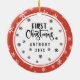 First Christmas Red and White Snowflakes Photo Ceramic Ornament
