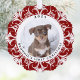 This personalised Christmas ornament features a charming, customisable design with a rich red snowflake background. Perfect for displaying a favourite dog's picture, making it ideal for commemorating their first Christmas. The back showcases a matching snowflake pattern, adding a festive touch to any Christmas tree. The ornament is an elegant keepsake and a thoughtful gift for dog lovers. Happy Ann Designs 2024. The current photo is a placeholder—please replace it with your own photo to make this ornament uniquely yours.